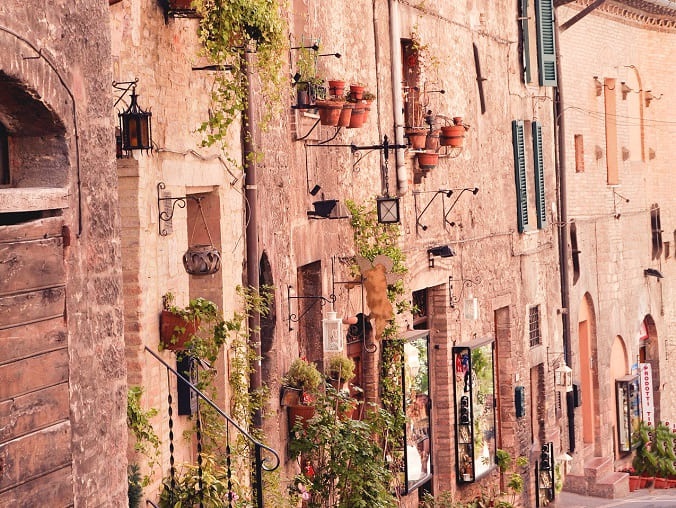 Niveau Quelques marches dans la vieille ville d'Assise.