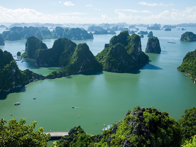 Déclarée site du patrimoine mondial par l’UNESCO en 1994, la baie d’Ha Long couvre une superficie de 43 400 hectares et comprend plus de 1 600 îles et îlots, dont la plupart sont inhabités et intacts. Ha Long, qui signifie littéralement « là où le dragon descend dans la mer » en vietnamien, est mondialement connue pour son paysage marin spectaculaire de piliers de calcaire, complété par sa biodiversité.
