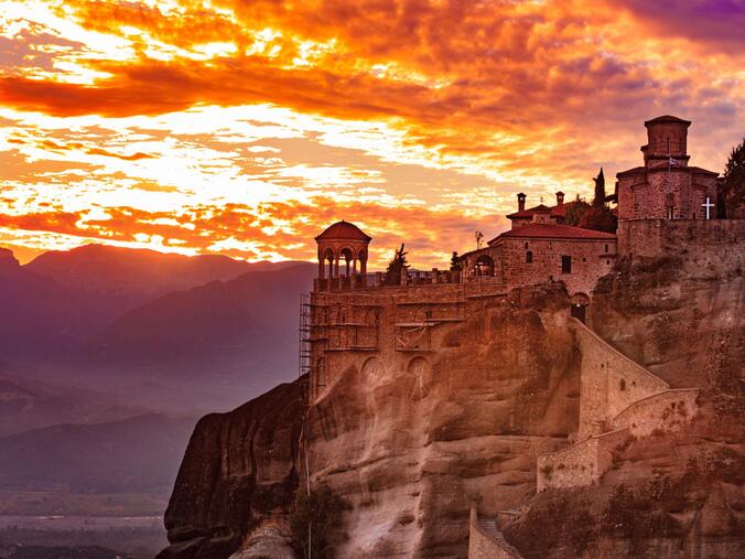 Journée consacrée à la découverte des Météores, site classé au patrimoine mondial, célèbre pour ses monastères perchés au sommet de pitons rocheux impressionnants.
