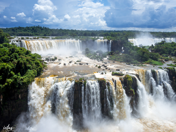 Départ pour la visite du côté argentin des chutes d'Iguazú. Iguazú signifie « eau grande » en guarani. Le site se trouve dans le Parc National d'Iguazú. Visite des chutes depuis les passerelles construites à cet effet. Vous emprunterez les chemins supérieurs et inférieurs aménagés sur les chutes pour apercevoir l'île San Martin et apprécier de près la force et la puissance des eaux de la Gorge du Diable après un trajet en train écologique de 15 minutes environ.
