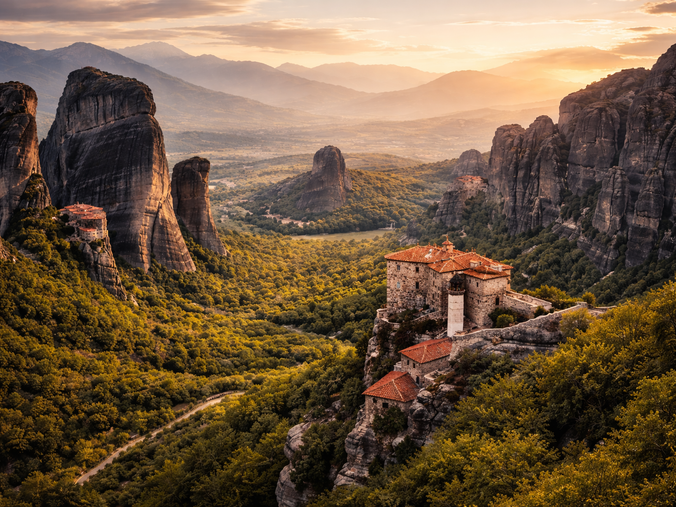 Journée consacrée à la découverte des Météores, site classé au patrimoine mondial, célèbre pour ses monastères perchés au sommet de pitons rocheux impressionnants.